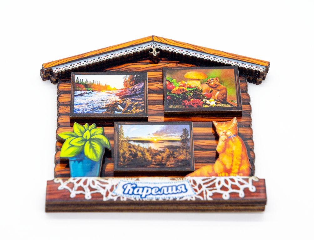 Этот объёмный магнитик с любовью воссоздает фрагмент старинного дома из брёвен.
